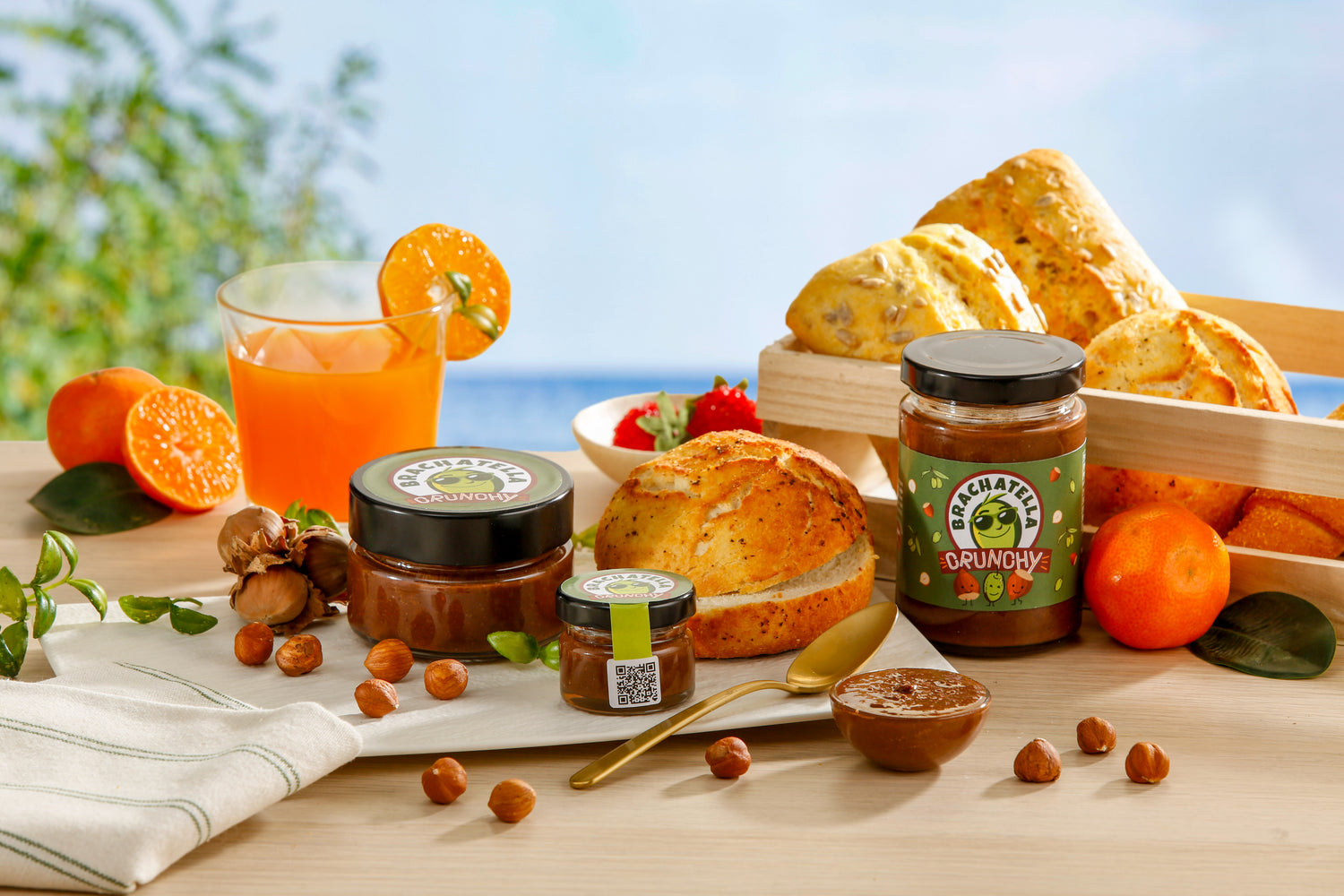 Slatki namaz od 67% lješnjaka, tamne čokolade, ekstra djevičanskog maslinovog ulja i morske soli s hrskavim komadićima lješnjaka.